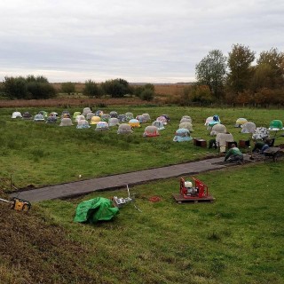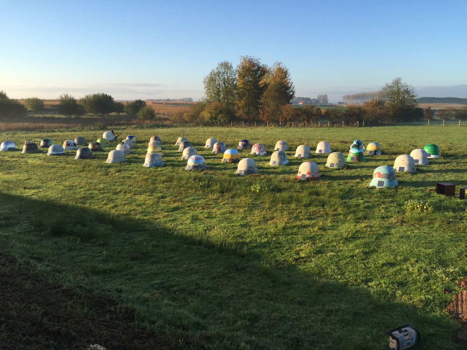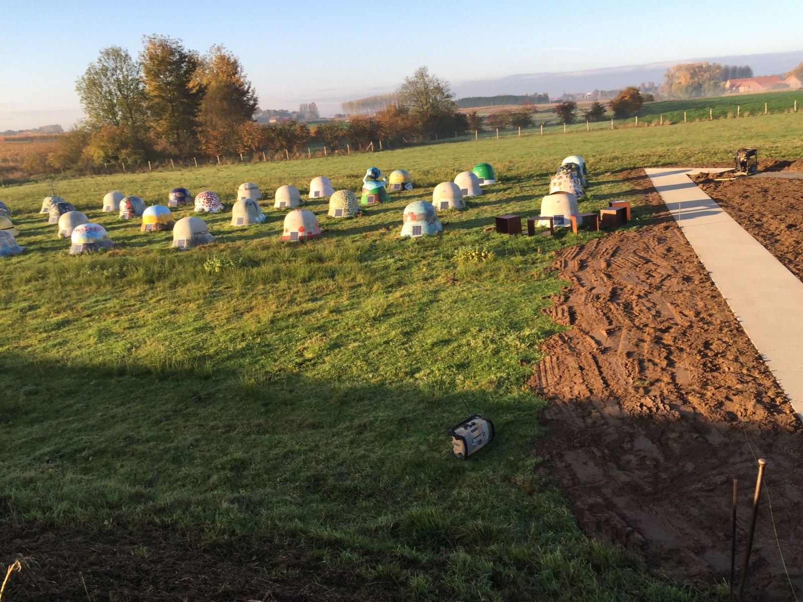 De 44 betonnen helmen werden vorig jaar gemaakt in opdracht van het provinciebestuur. Het ging om 44 identieke exemplaren met een gewicht van 1800 kg. Elk van de helmen werd aan een Limburgse gemeente uitgeleend. Het was aan de lokale besturen om de helm met de hulp van inwoners en plaatselijke kunstenaars de helm een persoonlijke artistieke toets te geven. Na die artistieke verfraaiing werden de helmen samengebracht op een terrein aan de toegang van het provinciaal domein Bokrijk in Genk.